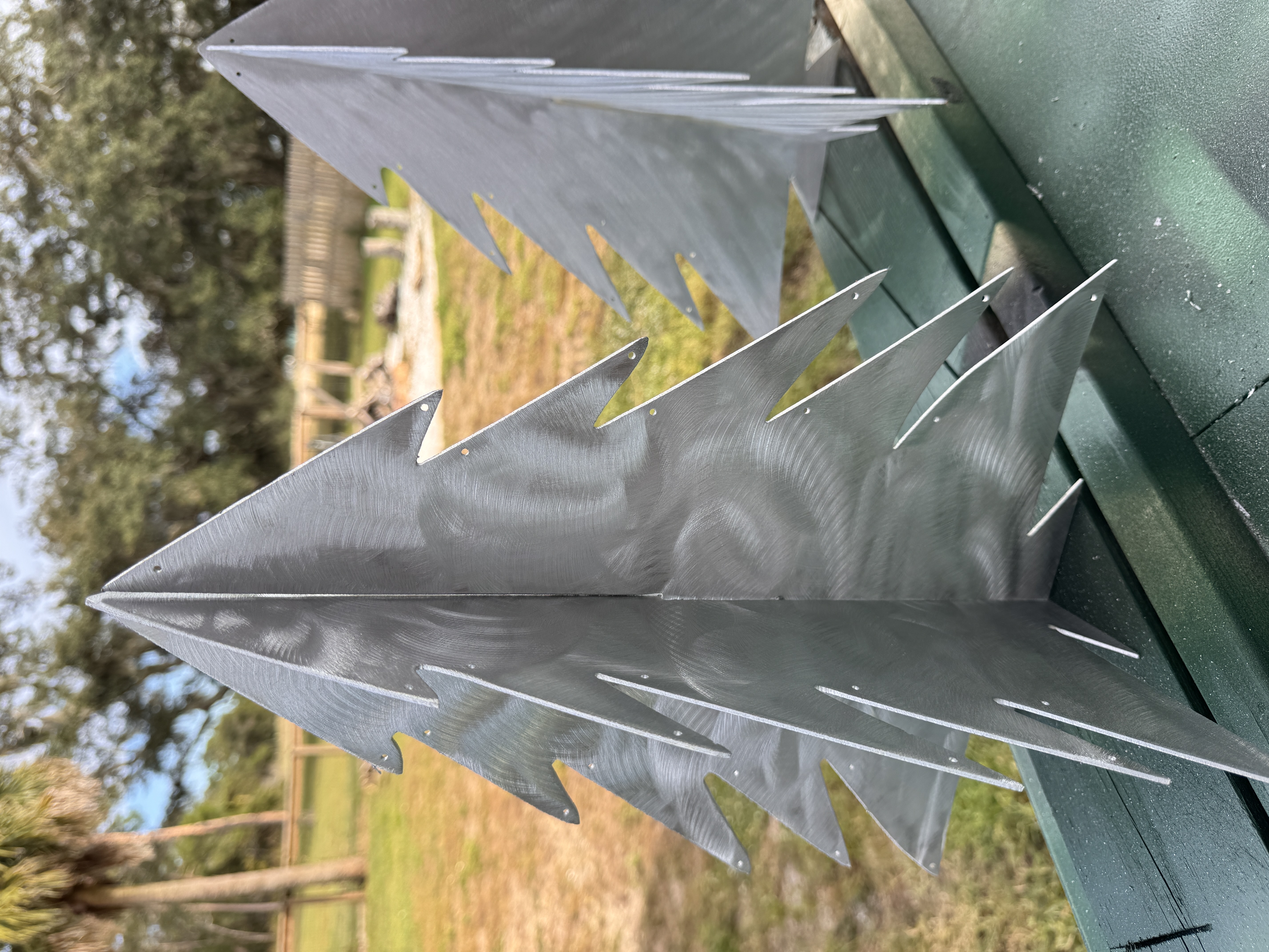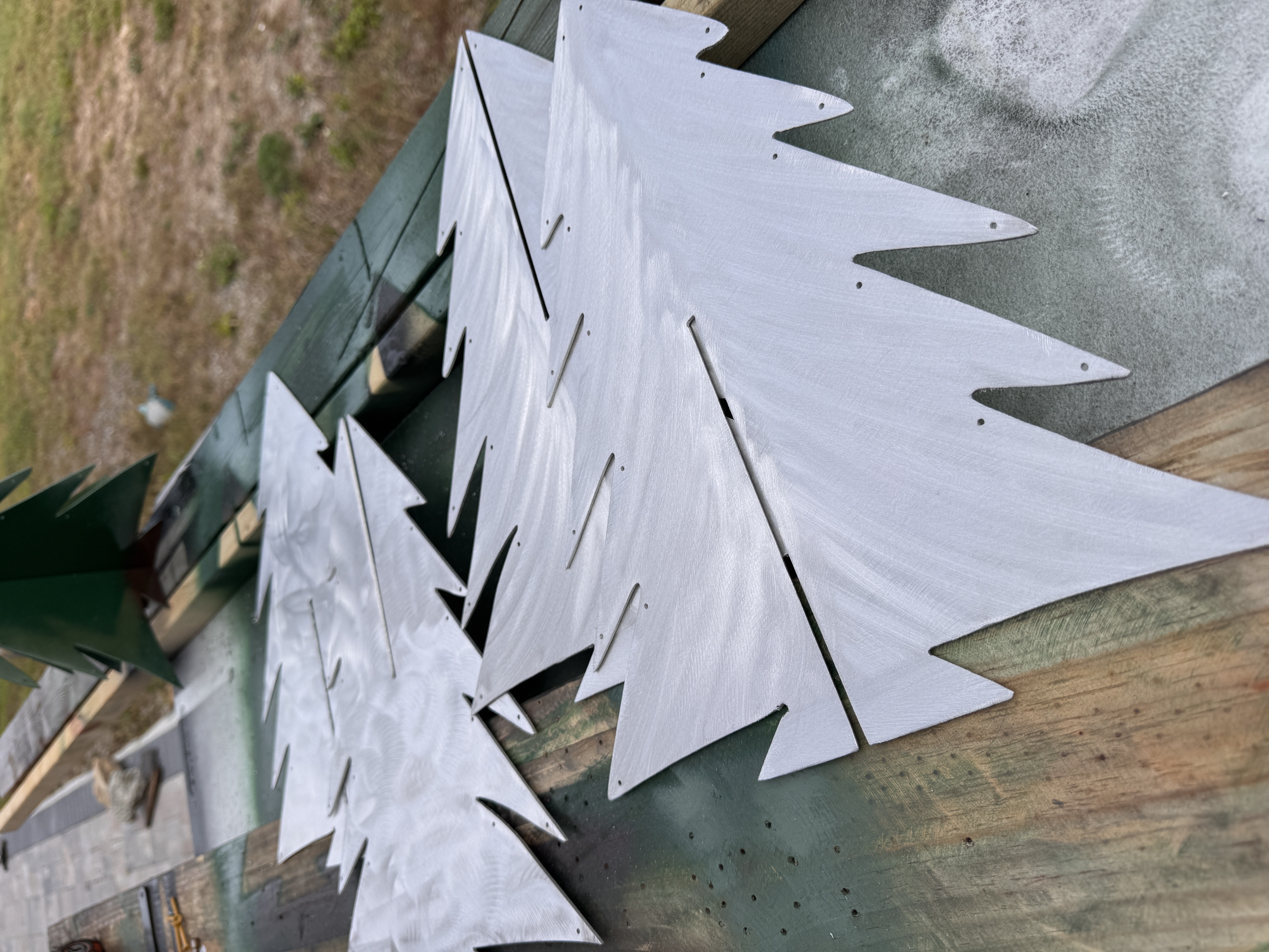 14 inches tall by 12” wide - This 3D Metal Christmas Tree is perfect for decorations. Made from 5052 Marine Grade Aluminum, means this won’t rust, so use it outdoors and indoors. Easily stored as it is only 2 pieces.