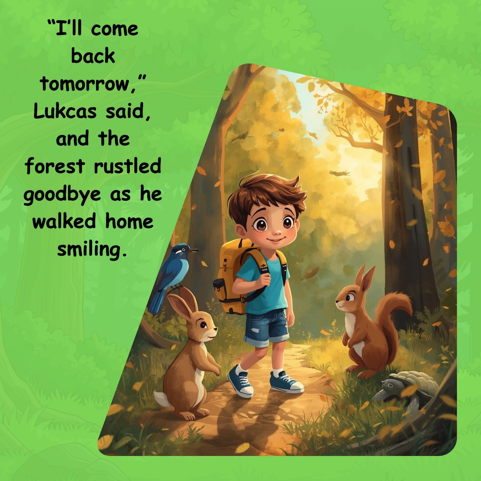 Step into a magical forest where adventure and friendship come alive! Join Lukcas, a curious little boy, as he meets a shy rabbit, a playful squirrel, and a wise old turtle — and discovers that kindness and sharing can turn strangers into lifelong friends. Perfect for ages 5–10, this delightful story sparks imagination, warms hearts, and inspires children to love nature and the world around them. 🌿✨